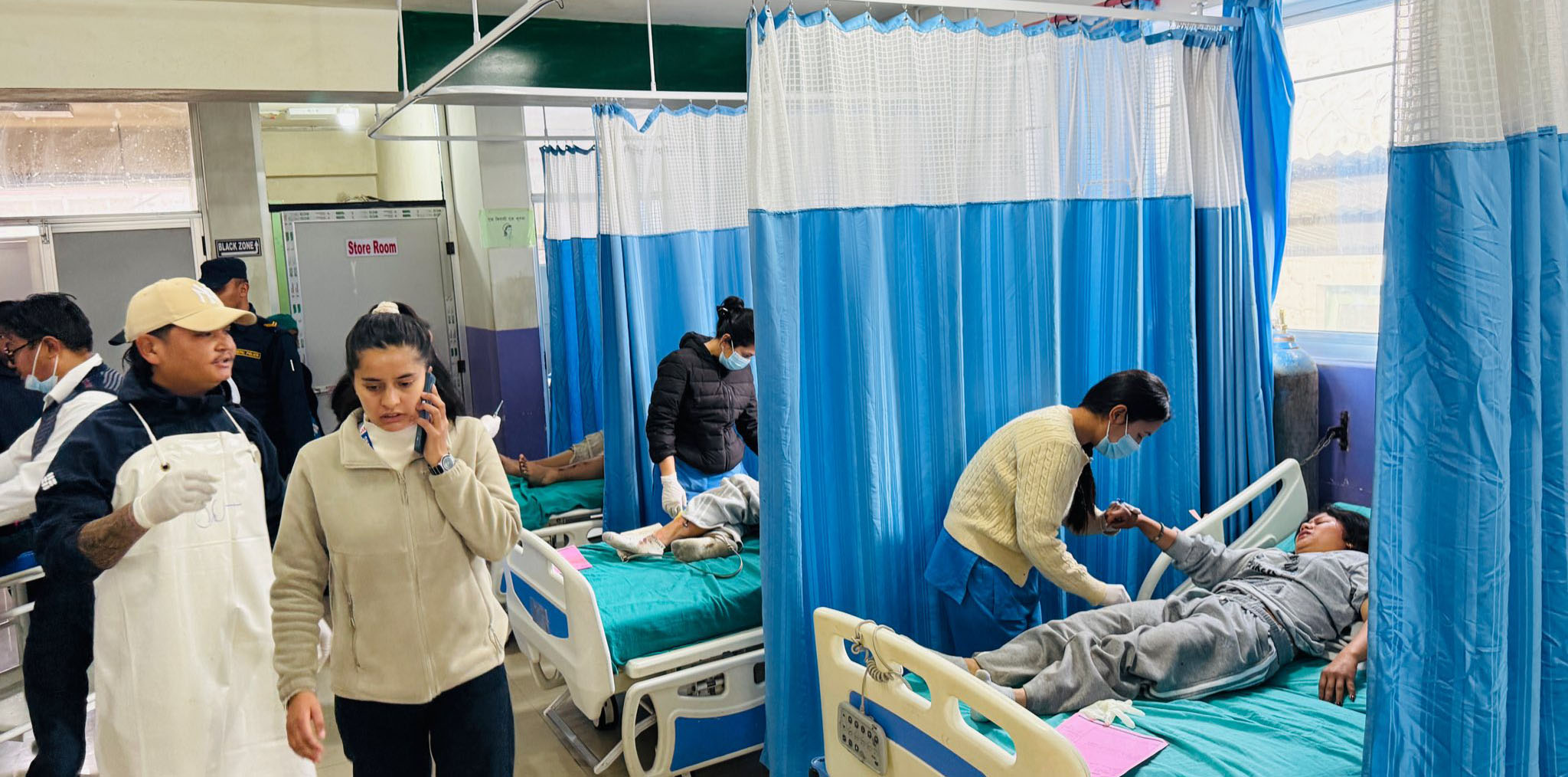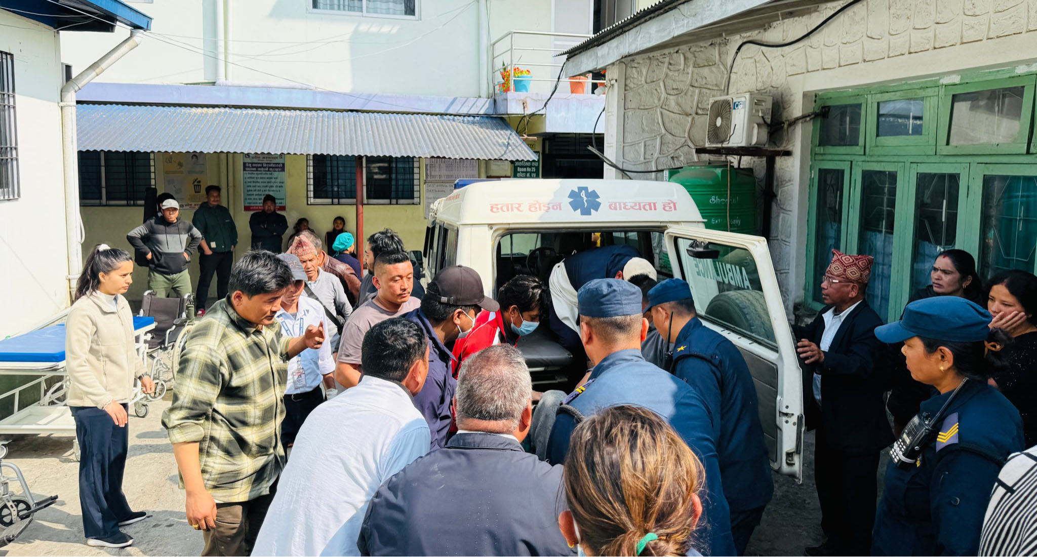 - क्व्होलासोथर गा.पा. ४ भुजुङ बस्ने वर्ष २२ की एलिना गुरुङ, बाँया हात,वाँया खुट्टा र छातीमा चोट,अवस्था मध्यम ।