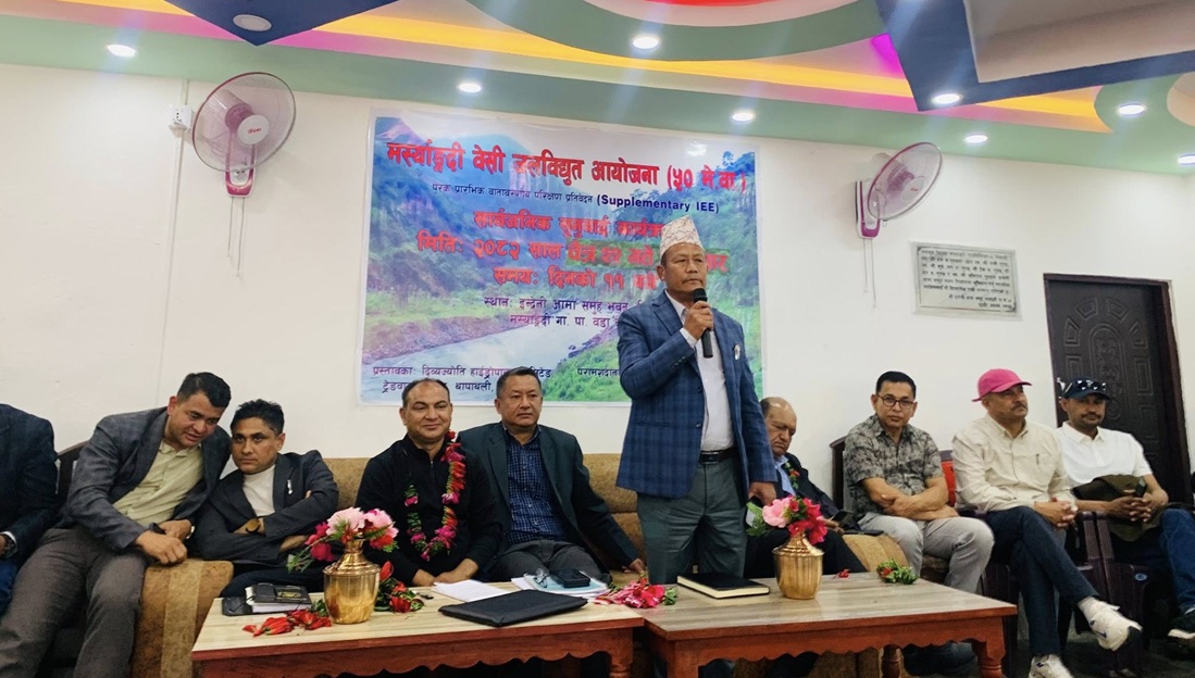 आयोजनाले आइतबार आयोजनाको पुरक प्रारम्भिक वातावरणीय परिक्षण प्रतिवेदनको अध्ययन प्रतिवेदन सम्बन्धमा प्रभावित क्षेत्रमा पर्न जाने भौतिक तथा वातावरणीय प्रभावबारे स्थानीय सरोकारवालाहरुका बिच सार्वजनिक सुनुवाई सम्पन्न गरेको हो ।