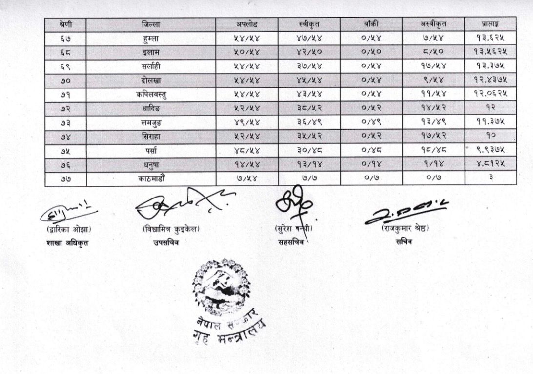 कार्यसम्पादन मूल्याङ्कनका लागि विभिन्न ‘इन्डिकेटर’हरू बनाएको र त्यसैका आधारमा जिल्ला प्रशासन कार्यालयले गर्ने कामहरूको नम्बर दिएर अङ्क प्रदान गरिने महाशाखा प्रमुख सुरेश पन्थीले जानकारी दिए ।