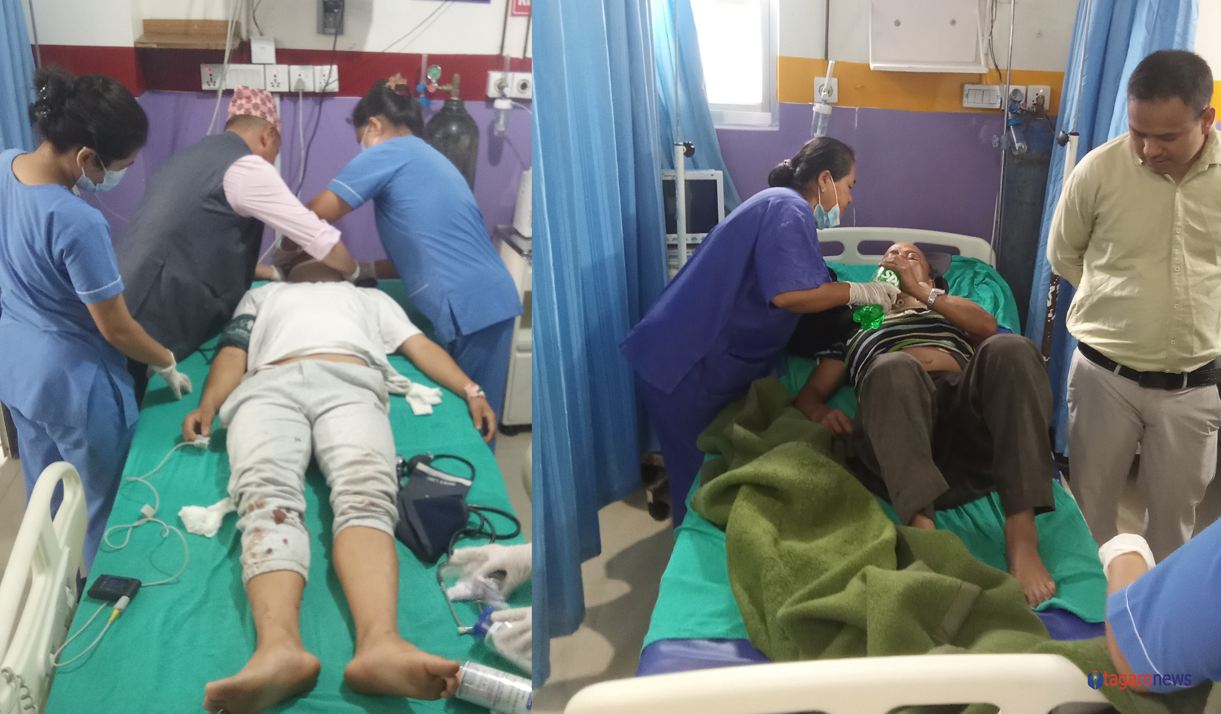 प्रहरीका अनुसार घाइतेहरुको ढाड, टाउको, हात, घाँटी र खुट्टामा चाेट देखिएको छ । घाइतेहरुलाई उपचारको लागि प्रदेश अस्पताल लमजुङ ल्याइएको छ ।