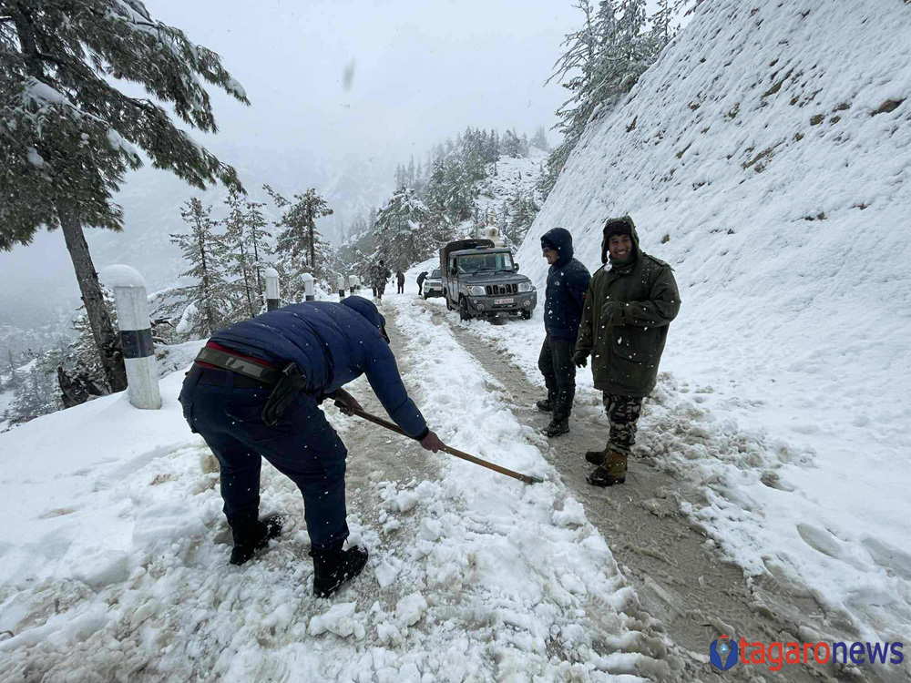 खाङसारदेखि तिलिचो बेसक्याम्पतर्फको क्षेत्रमा बाक्लो हिमपात पश्चात पर्यटकहरु रोकिएका हुन् । रोकिएका पर्यटकहरुलाई नेपाल प्रहरी, सशस्त्र प्रहरी बल र नेपाली सेनाको टोलीले बाटो खुलाउँदै सुरक्षित स्थानतर्फ सारिरहेका छन् ।